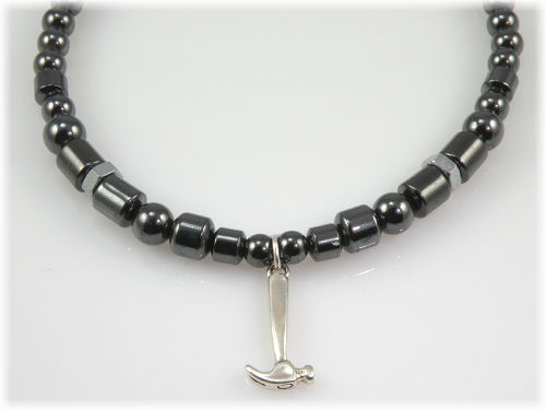 Magnetic Necklace w/varying sizes of High-Quality, HIGH POWER Magnetic Hematite beads w/ Sterling Silver Hammer & Hex Nuts - For the Man in Construction!